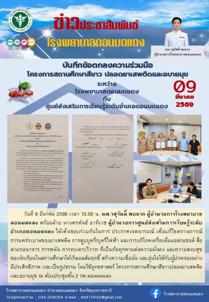 ระหว่าง โรงพยาบาลดอนมดแดง กับ ศูนย์ส่งเสริมการเรียนรู้ระดับอำเภอดอนมดแดง